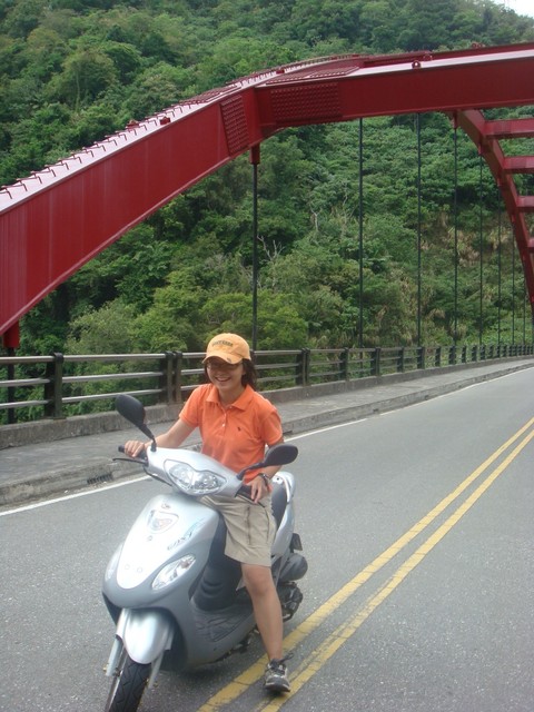 在紅色的楊清橋上,迎面而來的空氣就像透明的羽毛,沒有任何重量,感受不到任何都市空氣帶給人的負擔。