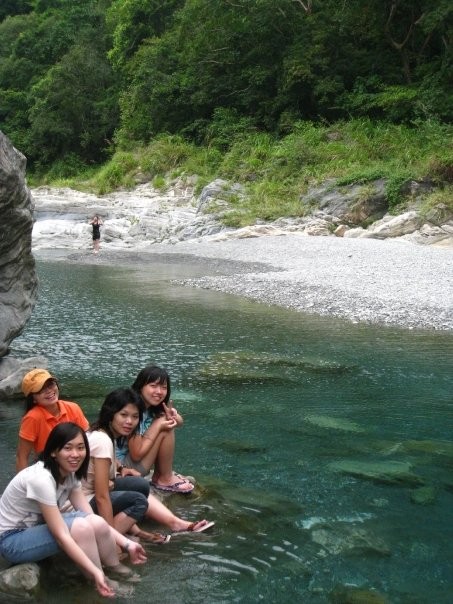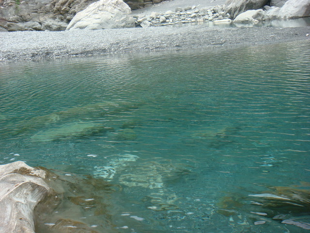 身旁是清澈見底的溪流,說他是藍綠色一點都不誇張,仰望天空,是ㄧ片無暇的淡藍