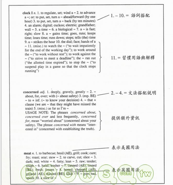 翻閱關鍵字,就能查到所有字詞搭配,範例如下:(圖片取字博客來網路書店)